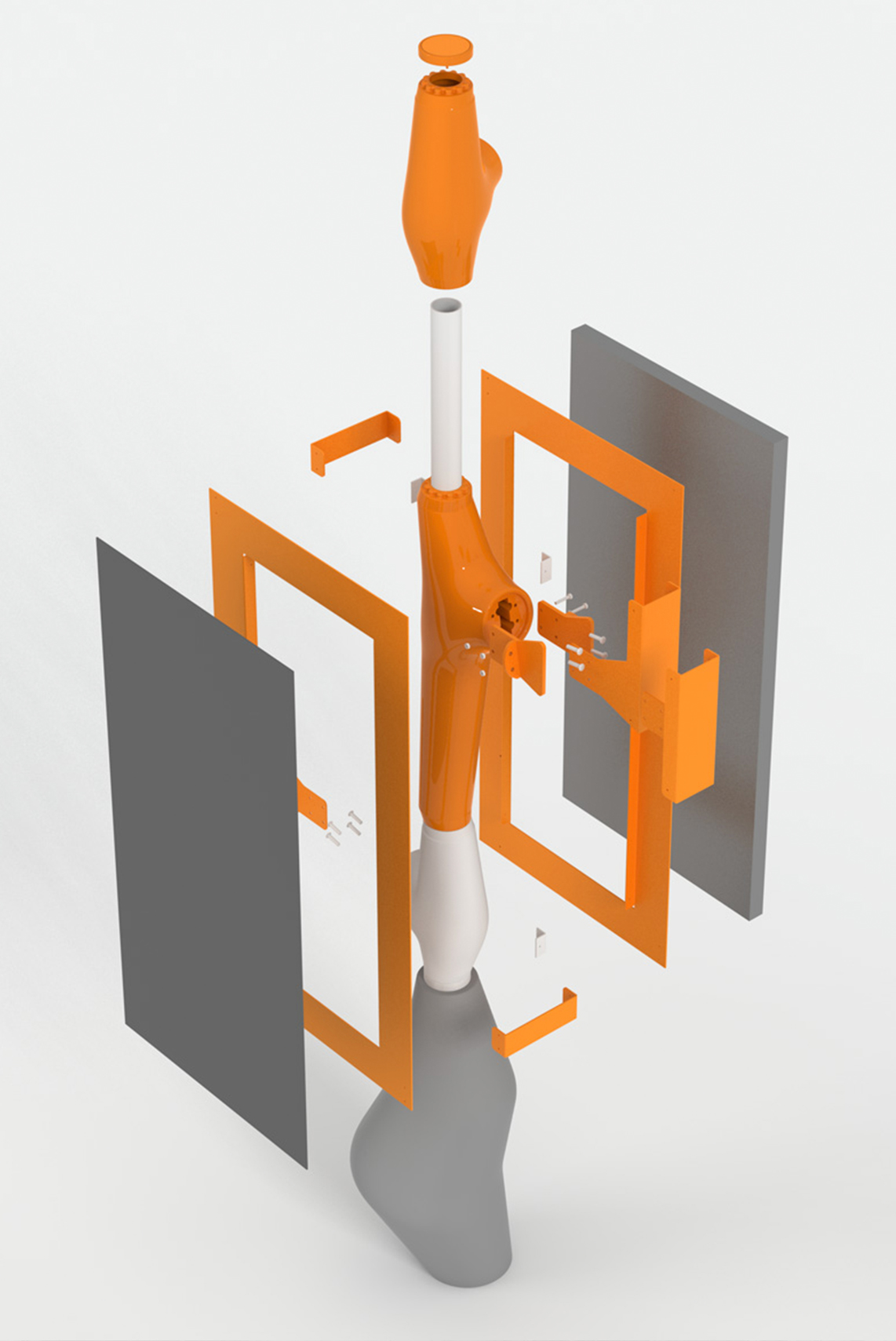 The resultant signage system is made up of two modular sand-cast aluminum components—short and tall—designed to slide over standard street poles and lock together, allowing for various configurations. The sand-cast aluminum includes an inbuilt locking mechanism, enabling on-site information and wayfinding changes to address the seasonal requirements.