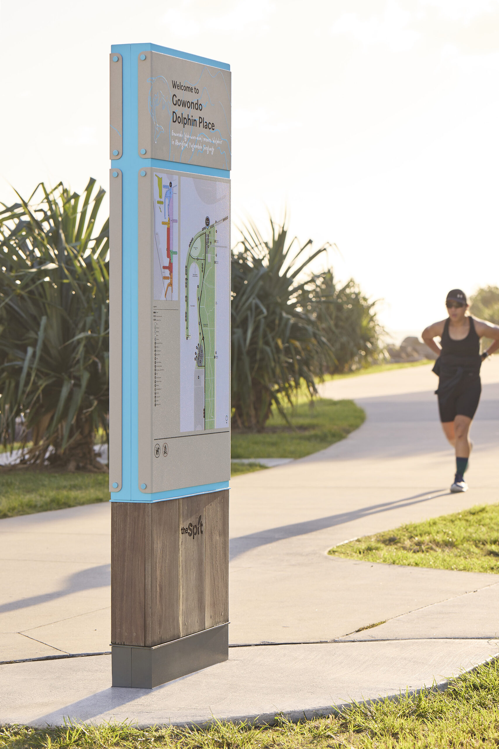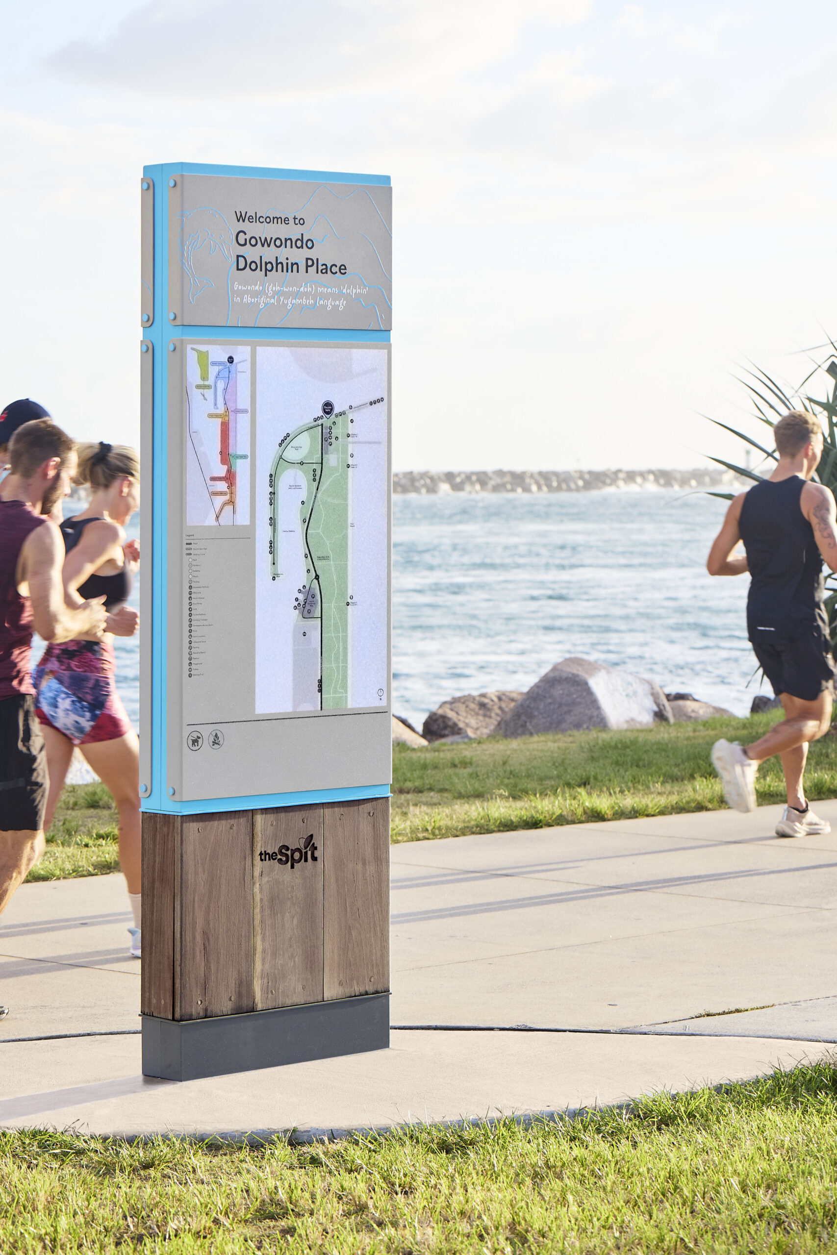 Our design draws inspiration from the Gold Coast’s natural elements—iconic sandy beaches, weathered timber, and expansive blue skies—resulting in a system that not only improves navigational clarity but also enriches the overall visitor experience. The signage invites both locals and tourists to delve deeper into The Spit’s rich indigenous and colonial heritage.